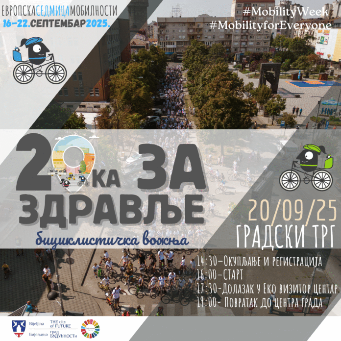 U subotu 20. septembra 2025. godine biće održana promotivnu biciklističku vožnju „20ka za zdravlje“ – od centralnog gradskog trga do Eko vizitor centra.