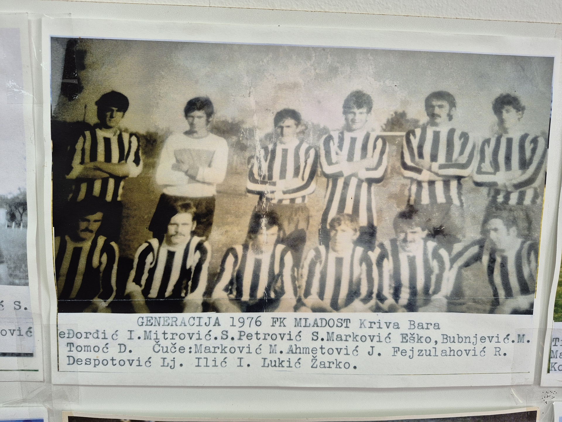 Gledajući stare fotografije, on se prisjeća nekih imena igrača, poput i danas aktivnog fudbalskog trenera i zaljubljenika u sport iz Krive Bare, Jovice Lukića, zatim Milorada Markovića, ili Mlađe Đorđića koji je od vlastitog novca kupio „Zastavin“ kombi kako bi igrači mogli da odlaze na utakmice u udaljenija mjesta.