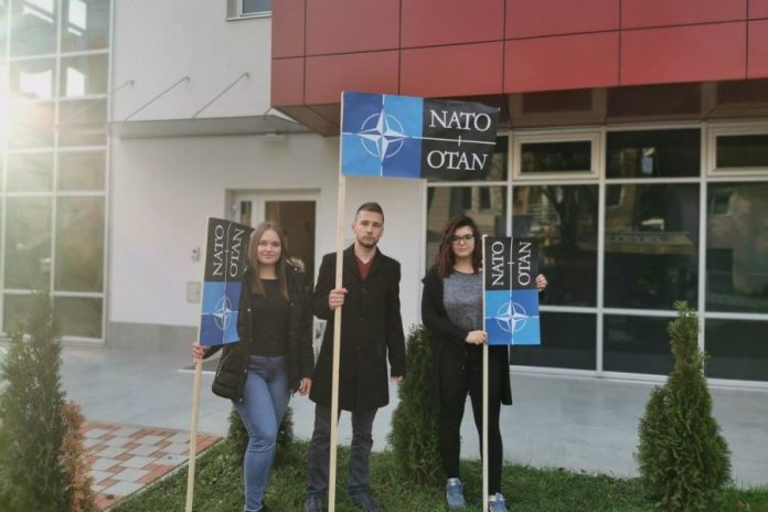 Lider mladih banjalučkog PDP-a Ivan Begić postavio je u nedjelju zastavu NATO-a ispred sjedišta SNSD-a u Banjaluci.