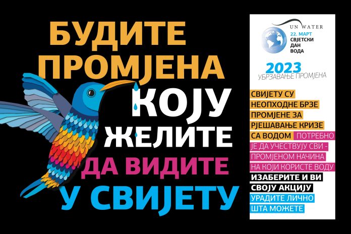 Tema Svjetskog dana voda 2023. godine je: UBRZAVANJE PROMJENA. Svijetu su neophodne brze promjene za rješavanje krize sa vodom. Potrebno je da učestvuju svi – promjenom načina na koji koriste vodu. Cilj ovogodišnje kampanje povodom Svjetskog dana voda je da svaki pojedinac, svaka porodica, škola i druge ustanove, organizacije i zajednice, definišu i preduzmu svoje sopstvene aktivnosti u cilju zaštite, očuvanja i racionalnog korišćenja vode.