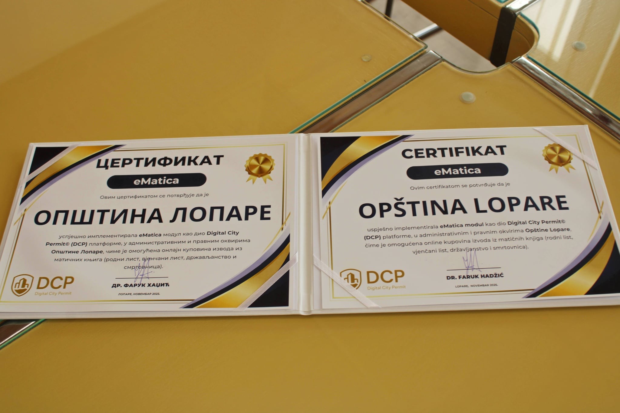 Autor projekta profesor Faruk Hadžić, priznati makroekonomski analitičar i konsultant, je načelniku Saviću uručio sertifikat „eMatica“.