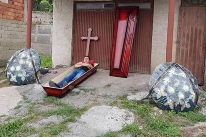 – N.L. je ležao u mrtvačkom sanuduku. Kraj njega su bili vijenci za sahranu, krst i poklopac za mrtvački sanduk – kaže sagovornik.