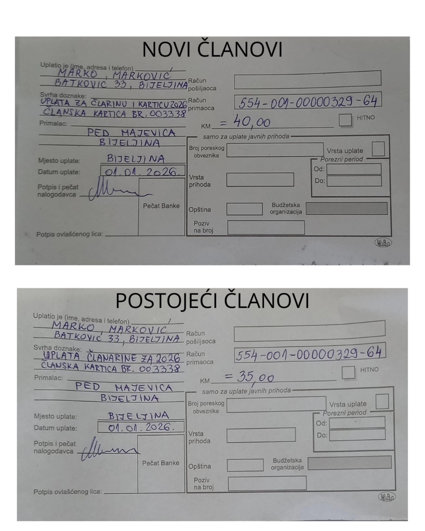 Uz ime i prezime uplatioca, stari članovi obavezno trebaju navesti i broj članske karte.