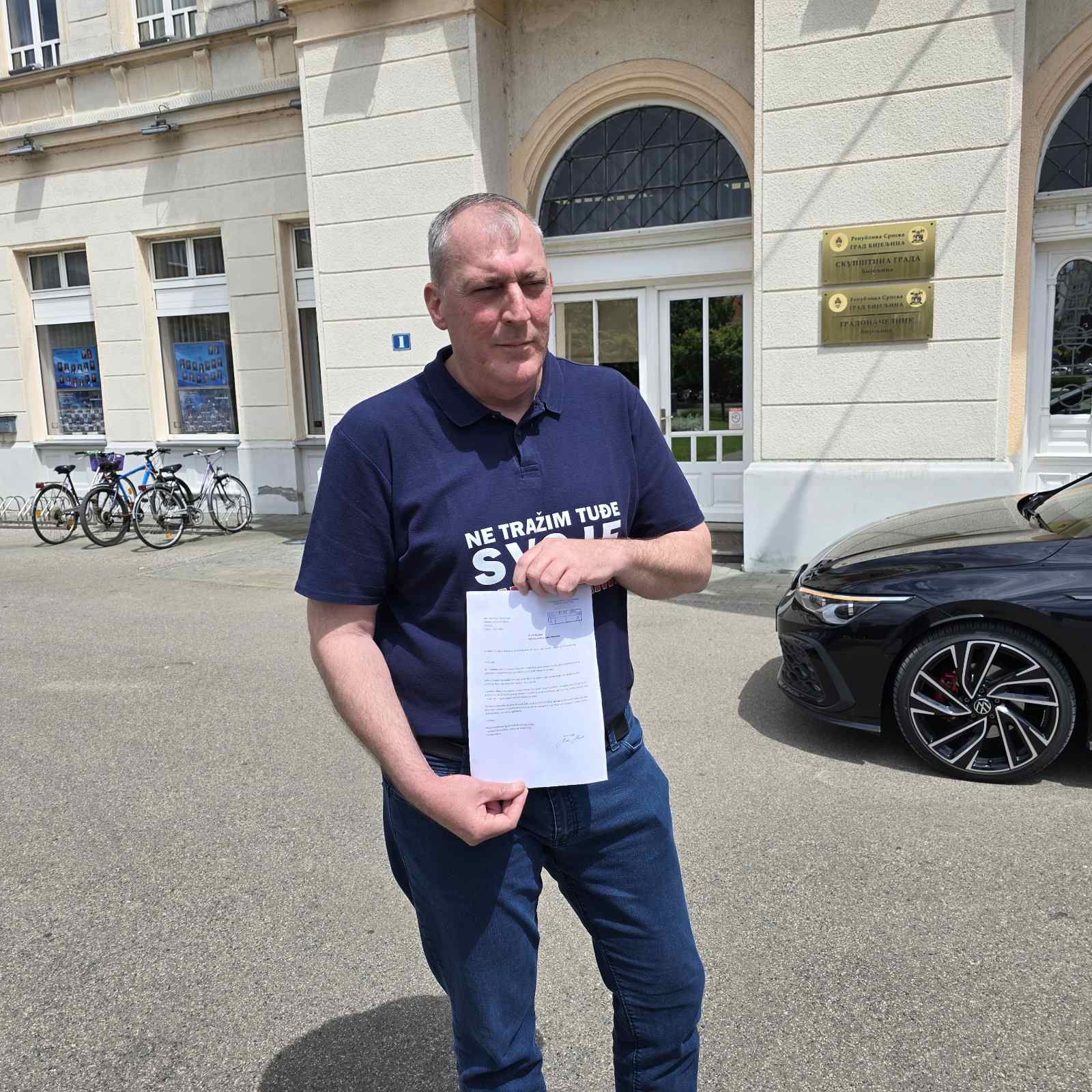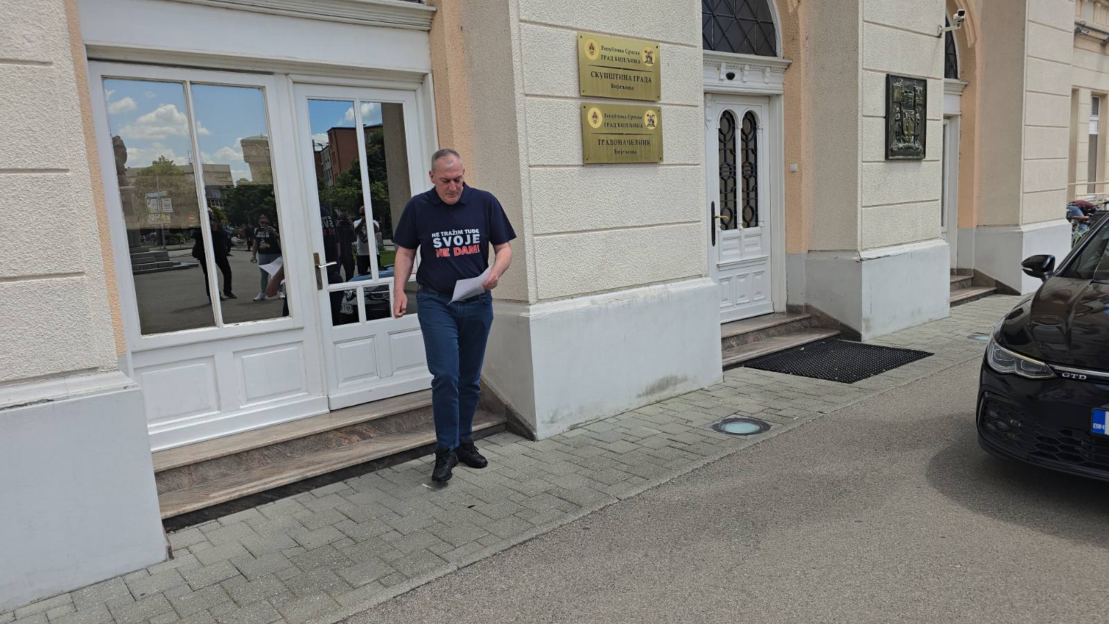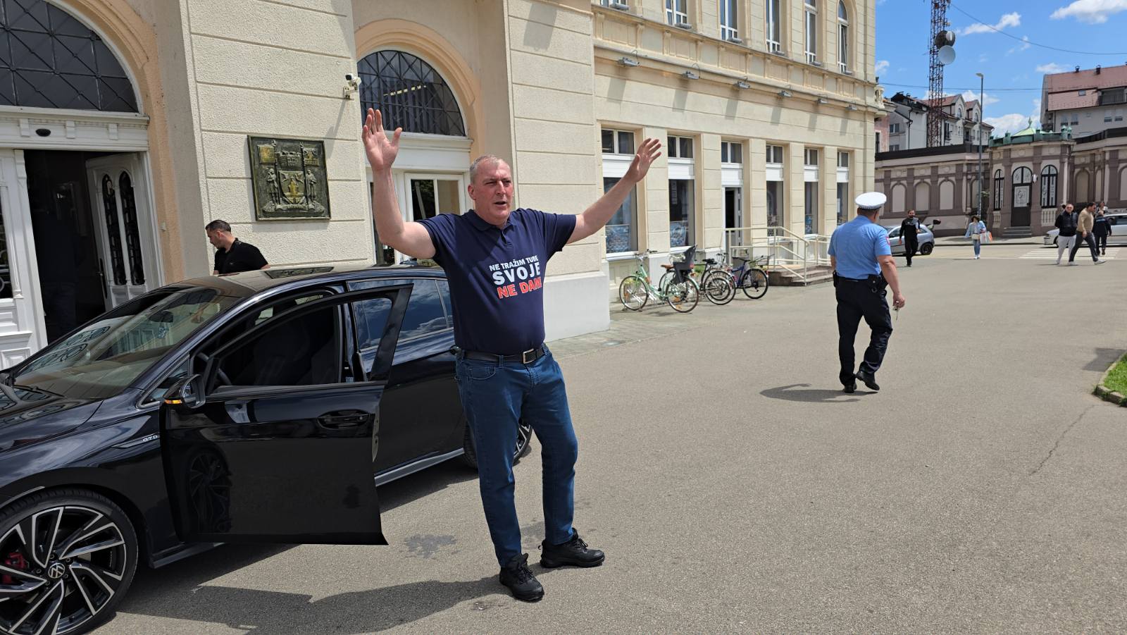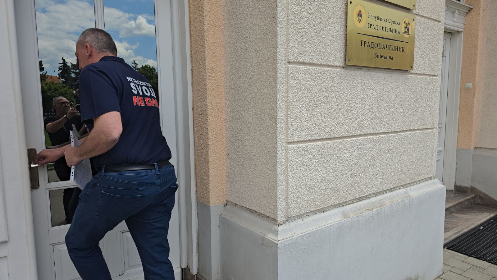 KAZNA 40 KM: Policija ispred Gradske uprave Bijeljina zbog Steva Lazića i BP “Dragstes“