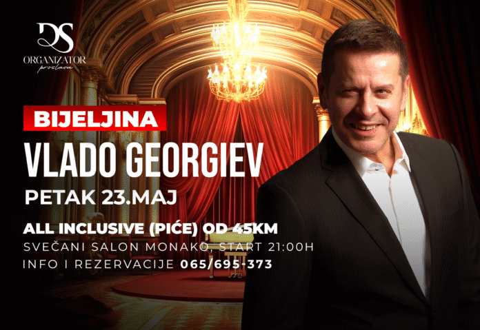 Jedan od najvoljenijih kantautora i izvođača sa prostora bivše Jugoslavije, Vlado Georgiev, održaće ekskluzivni koncert u Bijeljini, u petak 23. maja 2025. godine, u svečanom salonu “Monako“.